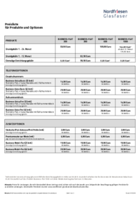Preisliste für Produkte und Optionen BUSINESS-FLAT 300 55,90 Euro 59,90 82,90 Euro 99,90 Euro 0,00 Euro1 99,90 Euro 82,90 Euro 99,90 Euro 99,90 Euro 0,00 Euro1 BUSINESS-FLAT 300 BUSINESS-FLAT 600…