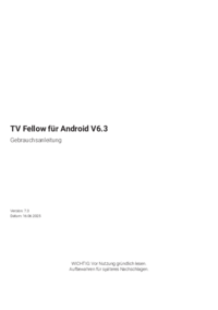 TV Fellow für Android V6.3 Gebrauchsanleitung Version: 7.3 Datum: 16.06.2025 WICHTIG: Vor Nutzung gründlich lesen. Aufbewahren für späteres Nachschlagen. Inhaltsverzeichnis Inhaltsverzeichnis 1…